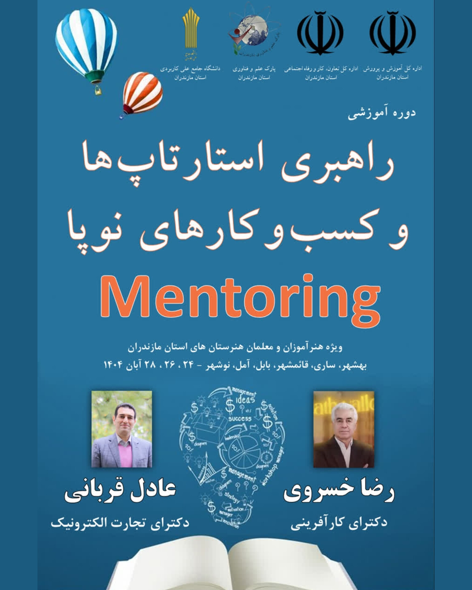 - ۲۶ آبان، ۸ تا ۱۱ صبح – ساختمان مرکزی پارک علم و فناوری مازندران (کیلومتر ۹ جاده فرحآباد) | مدرس: دکتر عادل قربانی