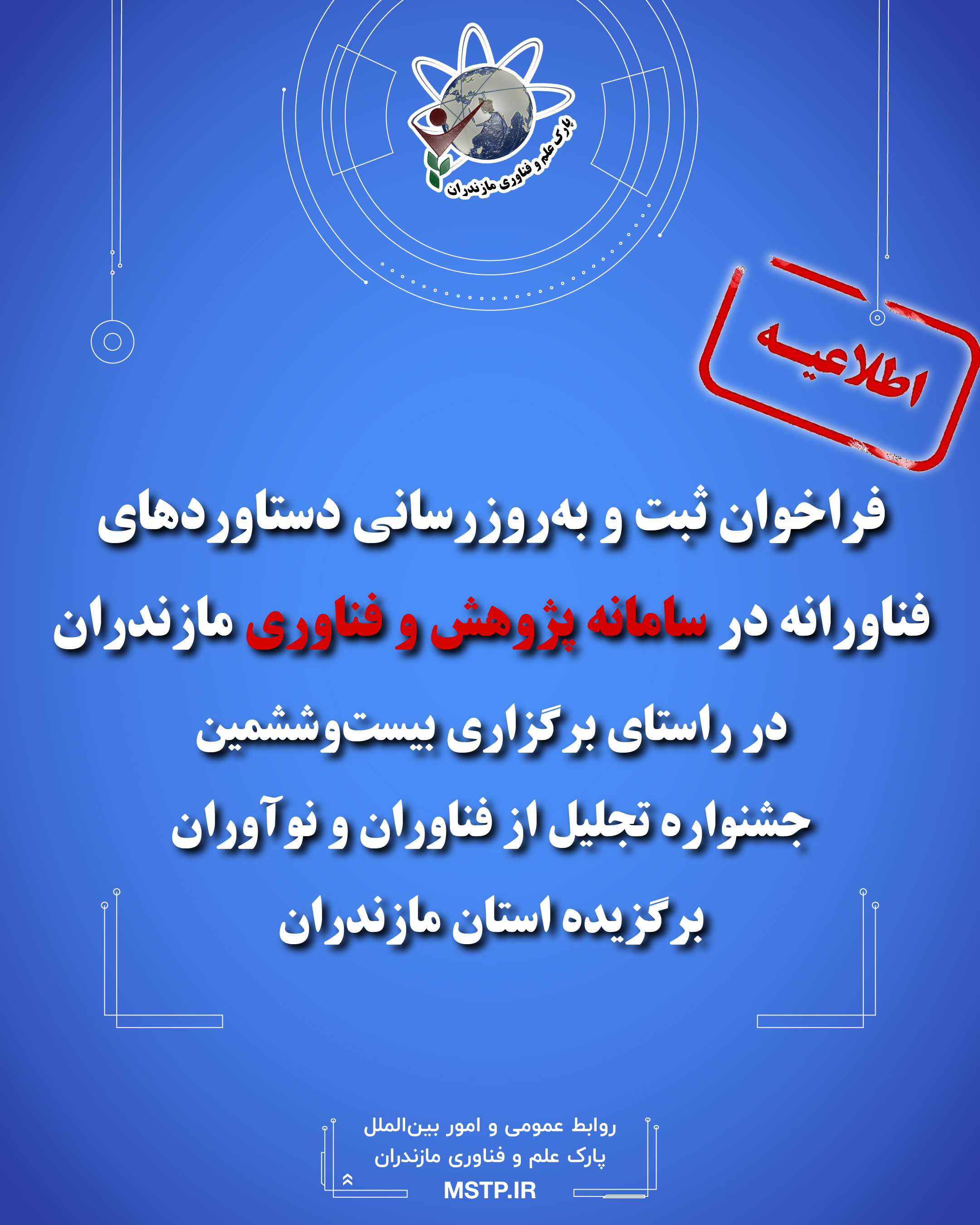 پارک علم و فناوری مازندران، مشارکت فعال واحدهای فناور در این فرآیند را گامی مؤثر در مسیر توسعه علمی استان، معرفی ظرفیتهای نوآورانه و ارتقاء جایگاه شرکتهای فناور در سطح ملی ارزیابی مینماید.